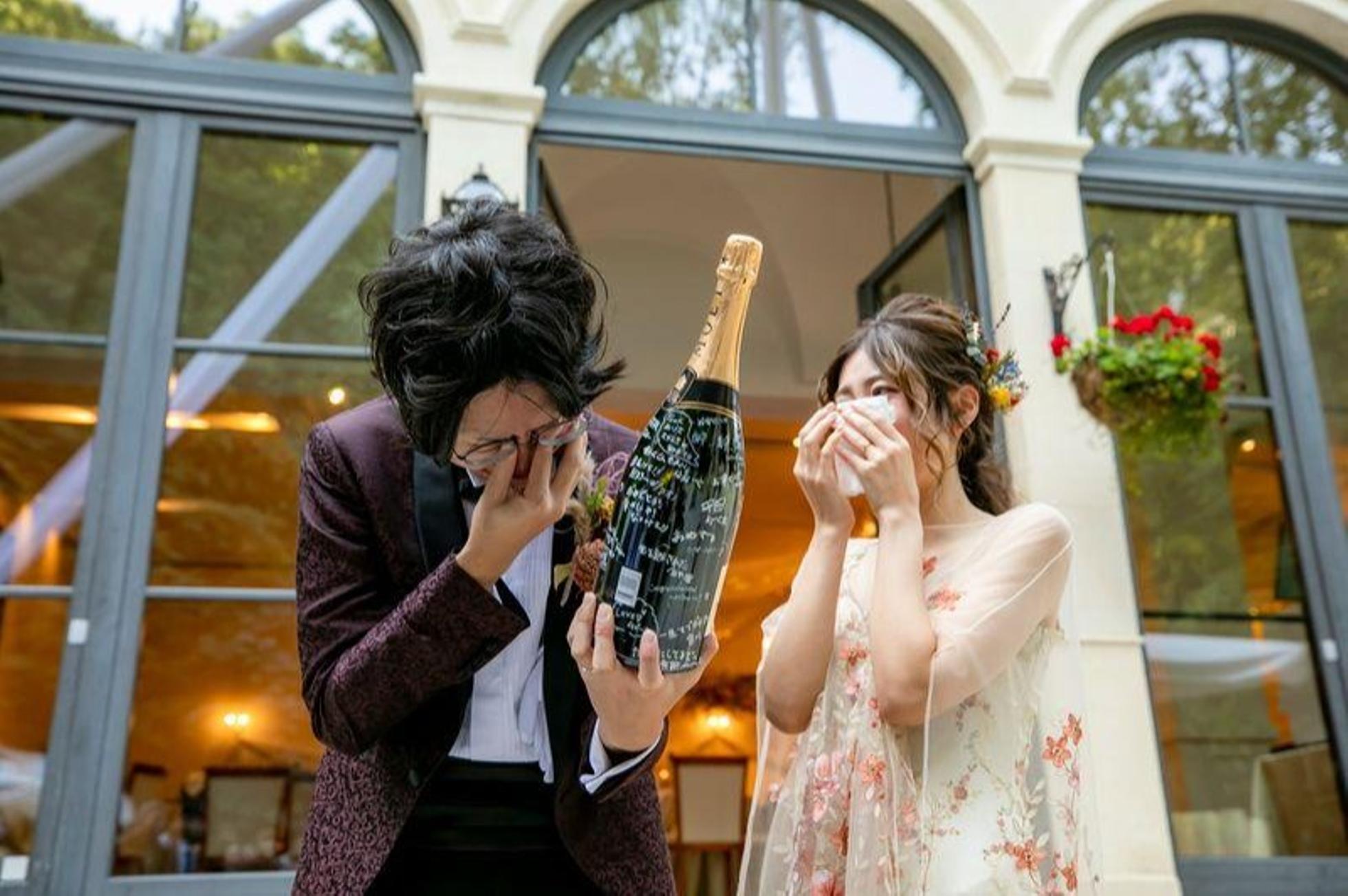 私たちが提供する結婚式に、しきたりはありません。お二人のエピソードや好きなものから発想を得て、おふたりだけの特別な1日を創り上げます。この日はメキシカンがテーマ。スタッフがメキシカンのとんがり帽をかぶり、マラカスやタンバリンを手に盛り上げます!時にはキャラクターに扮したり、反対にビシッと決める日もありますよ。