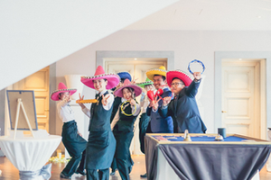 私たちが提供する結婚式に、しきたりはありません。お二人のエピソードや好きなものから発想を得て、おふたりだけの特別な1日を創り上げます。この日はメキシカンがテーマ。スタッフがメキシカンのとんがり帽をかぶり、マラカスやタンバリンを手に盛り上げます!時にはキャラクターに扮したり、反対にビシッと決める日もありますよ。