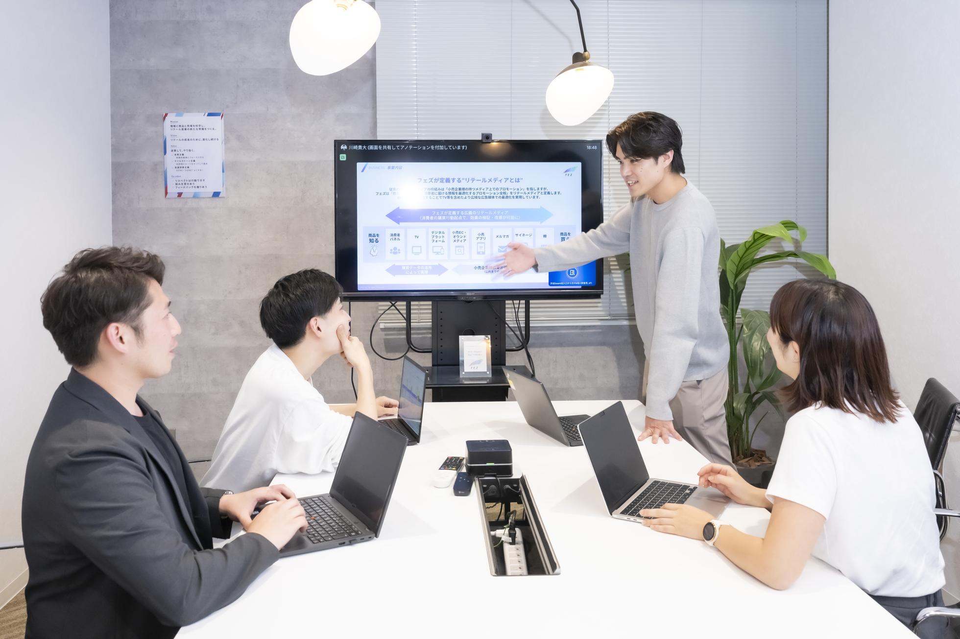 【組織の特徴】 広告代理店・事業会社・IT企業・コンサルなど、さまざまな業界から集まったメンバーが、職種や立場を越えて協働しています。一人ひとりが自分の役割に責任とオーナーシップを持ち、自分ごととして課題に向き合う文化が根づいています。 年次や肩書きではなく、成果や信頼で評価されるフラットな組織だからこそ、誰もが主体的に動き、変化をつくっていける環境があります。 【フェズの働き方】 成果を出すために、どう働くかは自分たちで決める。そんなスタンスで、自由度の高い働き方を実現しています。一人ひとりの強みやライフスタイルに寄り添いながら、安心して挑戦し続けられるカルチャーがあります。 ■勤務時間 フルフレックス制度(コアタイム:無し) ライフスタイルや生産性の高まる時間は人それぞれ。だからこそ私たちは、コアタイムなしのフレックス制度を導入しています。 ■リモートワーク制度 原則週3日出社をベースに、在宅勤務と組み合わせたハイブリッドな働き方を実現。 集中したいときはリモート、アイデアを交わしたいときはオフィスへ。自由とつながりの両立を大切にしています。 ■サマーバケーション制度 毎年付与される年休以外に、夏季休暇を別途付与します。7〜9月の好きなタイミングで合計4日取得可能です。 ■社内コミュニケーション 活発な議論の促進や一体感醸成のため、様々なオフサイトコミュニケーションを推奨しています。年に一度盛大に行う全社キックオフ・四半期に一度オフィスフリースペースで行う立食パーティ(Beer Bush)・部門ごとの半期や四半期の慰労会等には会社で費用負担をするほか、様々な趣味を継続的に楽しむ部活動や単発のイベント等も積極的に行われています。 ■副業OK フェズ以外でも優れた才能を活かし、社会に貢献すること、そしてさらなるプライベートの充足を図るためにも、本業に支障をきたさない範囲で副業を認めています。