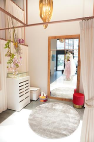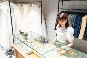 ロサンゼルスのサロンを参考に設計デザインにこだわったウェディングサロンです。とても開放的で光が差し込む明るい店内は木の温もりにあふれており、店舗のビル(インターシティAIR)は庭園の中に作られているので、新緑や桜、紅葉など四季折々のシーンの中、カップルがウェディングフォトを撮影することもできるショップです。