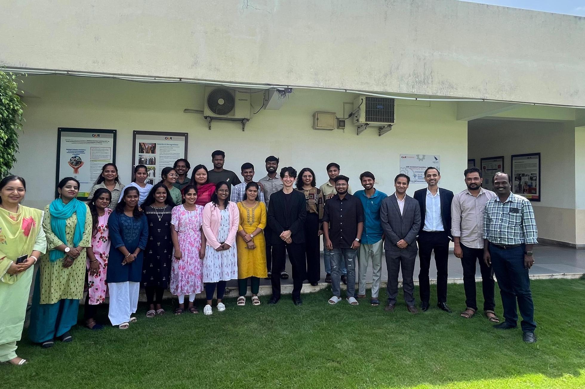 看護大学生の前で日本の介護業界で働くことについて講演をするインド法人代表マンシー