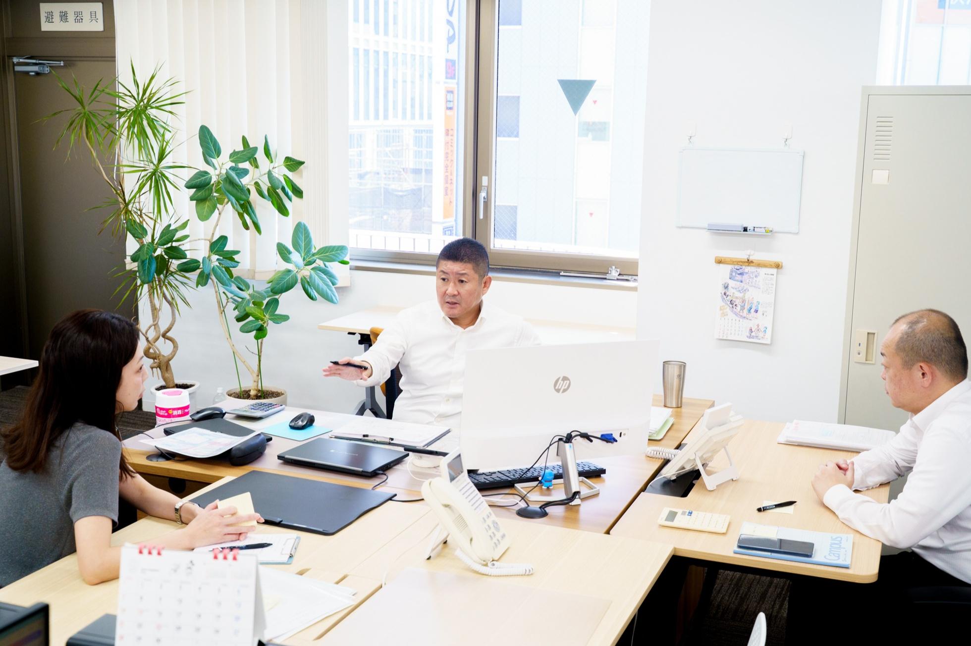 ▍1人ひとりのパフォーマンスを最大化する組織 当社は、少数精鋭の組織です。事業ごとに部門は分かれていますが、それぞれが連携して1人以上のパフォーマンスを発揮することを大切にしています。業務の幅を自ら広げ、多様な経験を積むことで、市場価値の高い汎用的なスキルを身につけていける環境です。 ▍現役営業マンである代表だからこその実力主義 当社では、代表自身が今も現役で営業の最前線に立ち続けています。だからこそ、成果に報いるという方針が深く根付いています。入社1年目から昇給を勝ち取ったメンバーがいるように、年齢や社歴に関係なく、頑張りが正当に評価される風土です。この環境で、結果を出すことに貪欲な仲間と共に、自らの力で未来を切り拓いていくことができます。 ▍見て、盗んで、実践する成長環境 特に、マンション販売領域ではメンバーが同じフロアで仕事をしているため、ハイパフォーマーの営業を間近で見て学ぶことができます。また、アポイント獲得から商談、クロージングまでを一貫して担当するため、不動産営業のすべてを経験し、市場価値の高いスキルを習得できます。新卒入社の20代メンバーが活躍しているのは、チームリーダーが商談をサポートするなど、「見て、盗んで、実践する」仕組みが整っているからです。