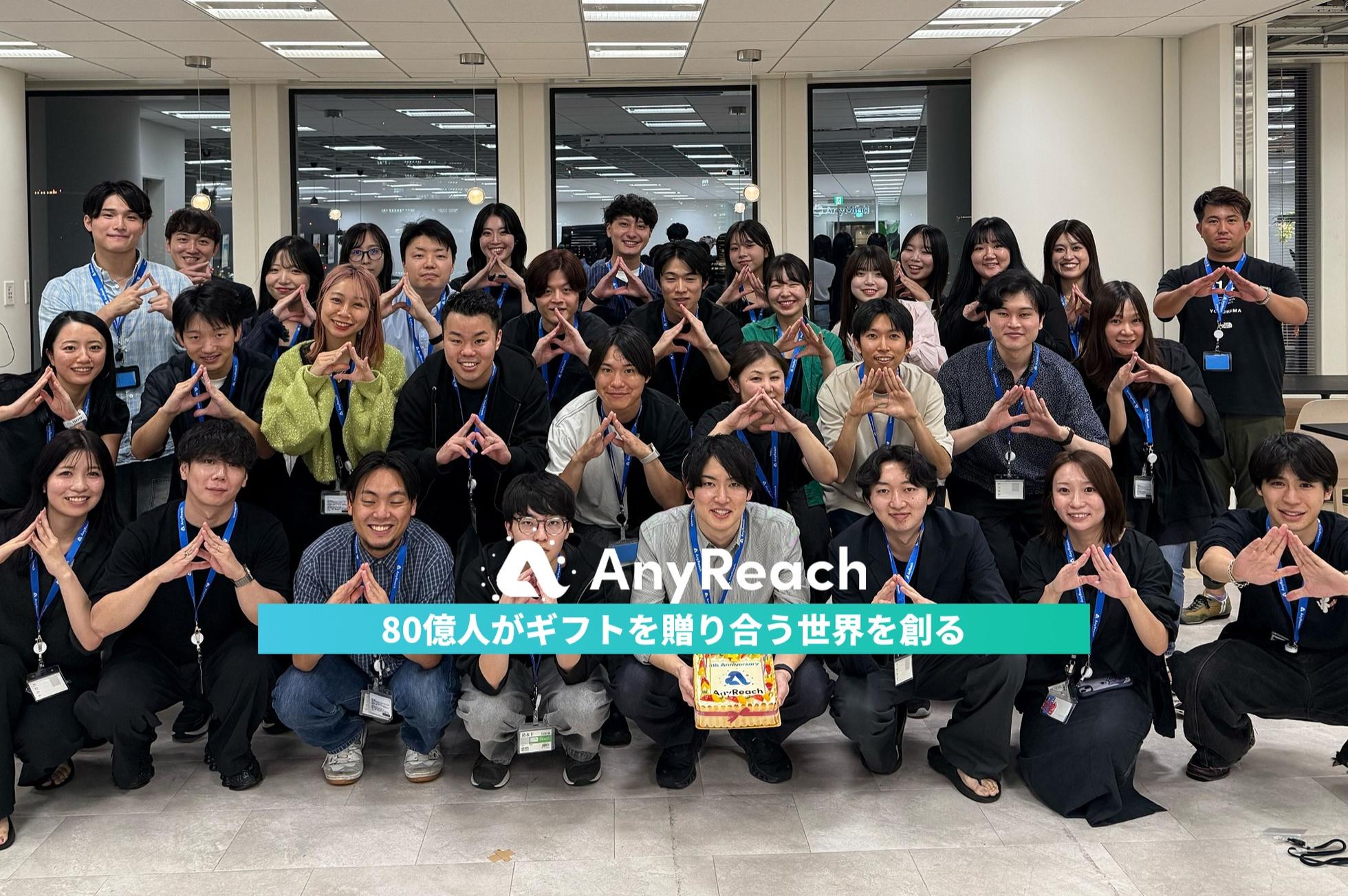 ■新しい価値、未来を創る 事業や組織を0から創るということは、会社の未来を変える大事な意思決定の連続で、これまで自分が人生でやってこなかったことばかりが直面してきます。それでも、仲間と共に日々試行錯誤をしながら、まだない事業、まだない未来を創り、事業を成長させていく。そんな未知の体験、新しい領域を切り開く楽しさや難しさにワクワクしながら、新たな価値を生み続けていきます。 ■働き方と働く環境 社員27名とインターン・業務委託が40名ほどの合計70名で運営中。IT業界出身者を中心に、一同仲良く働いています。年齢や経歴に関わらずフラットに議論し合える環境で、ざっくばらんなコミュニケーションも盛んです。学生インターンが活躍しており、長期インターンを経て、24新卒が3名、25新卒が2名入社しています。 私たちと一緒に、ギフト × AI × グローバルで「80億人がギフトを贈り合う世界」を目指しませんか? 少しでも弊社に興味をお持ちいただけましたら是非お気軽にご連絡ください! まずはカジュアルに事業や組織について、お話しさせていただければと思います。 会社HP:https://anyreach.co.jp/ 採用情報:https://anyreach.notion.site/AnyReach-04e815b2f7c042fd8d4e05917d455040