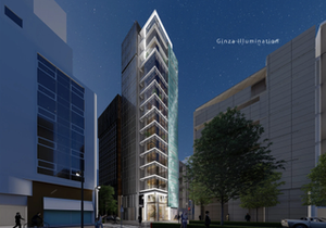 GINZA 7-CHOME PROJECT|銀座中央通り至近という高いポテンシャルを持つ立地において、ブティック街とクラブ街という二つの異なる都市文化がせめぎ合う境界に位置する敷地の特性を最大限に生かし、銀座らしい洗練とナイトシーンの高揚感の双方を内包する商業ビルとして計画しました。