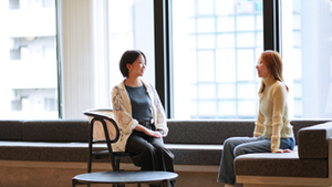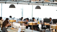 恵比寿駅徒歩3分のオフィス、コラボレーションを生み出す場所として対面コミュニケーションも大切にしています。