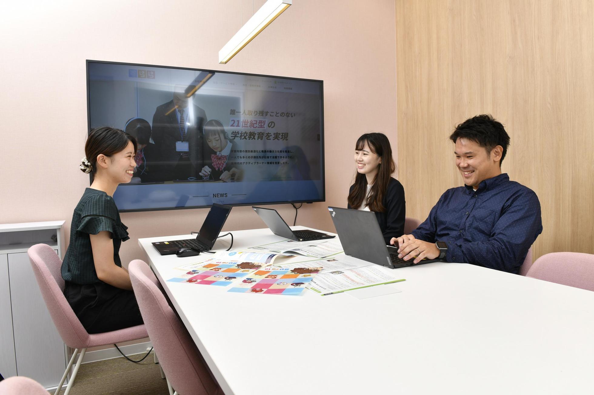 役職や年齢に関係なく、フラットに意見を出し合う社風で、新卒一年目の社員も広く活躍しています。