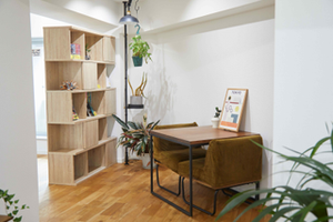 休憩スペース&本棚。本棚には従業員の推し漫画が並んでいます。