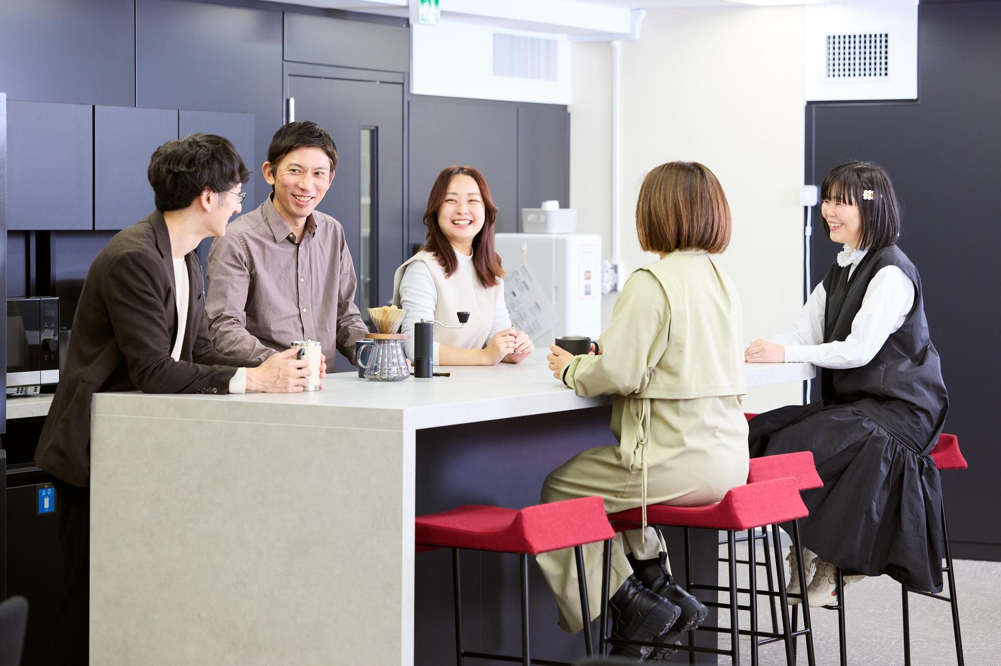 2022年7月からよりリモートワークと出勤のハイブリッドを推進すべくWeWorkに本社移転。素敵なラウンジスペースでは毎日16時以降になるとビールも飲み放題です。オン/オフの切り替えは生産性高く働くには必要だと考えています。