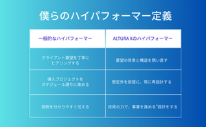 ▍私たちが本当に求めていること  ̄ ̄ ̄ ̄ ̄ ̄ ̄ ̄ ̄ ̄ 本当に日本から、GoogleやAppleに並ぶ巨大企業を生み出せないのか? 世界のルールを塗り替えるのは、いつも海外企業。 でも、私たちは信じています。 2030年。健診が“紙で終わる社会”を残すのか、健診を“命を守るデータ基盤”へ進化させるのか。その変革をリードするのが、ALTURA Xです。 私たちは「健診DX × PHRクラウド」を基盤に、医療機関・企業・保険・個人をつなぎ、医療アクセスの変革と医療費削減を両立するインフラ企業として成長を加速させています。 目指すのは、日本初のデカコーン(時価総額1兆円企業) 社会課題を解決しながら世界を獲りに行く、本気の挑戦に参加する覚悟はありますか? ALTURA Xは、その仲間=CREWを求めています。 ▍冒頭メッセージ  ̄ ̄ ̄ ̄ ̄ ̄ ̄ ̄ ̄ ̄ ALTURA Xが求める“ITコンサルタント”は、 単なる“実装の橋渡し役”ではありません。 クライアントが気づいていない本質的な課題を掘り起こし、 テクノロジーの力で仕組みを再設計し、医療という社会インフラを前に進めること。 私たちは、言われた要件を整理する人ではなく、 “問いそのもの”をつくり直せる人を探しています。 スタートアップの船に乗るということは、 固定化されたプロジェクトに乗ることではありません。 航路なき海に、問いと仮説と行動で道筋を描く仕事です。 あなたのコンサルティングが、現場の医療の在り方を変える。 あなたの提案が、まだ形になっていない新しい体験を創り出す。 ALTURA XのITコンサルタントは、“医療の未来の変革者”です。
