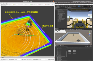 建機遠隔操作ソリューションを搭載した油圧ショベル。ダンプトラックへの土砂積み込み動作も可能