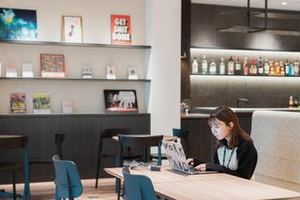 オフィスのコンセプトは、「TORIHADAを造りに集まりたくなる空間」。執務スペースの横にこういった食事や打ち合わせができる万能なフリースペースを広く設け、様々な業種のメンバーが入り混じり、シナジーを生んでいきやすい環境となっています。