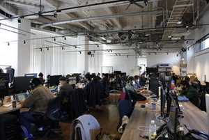 オフィスにはいつも音楽が流れています。Slack と Spotify を連携させて、思い思いにプレイリストを作っては、各々が次の曲を予約しています