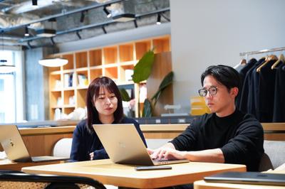 恵比寿駅徒歩3分のオフィス、コラボレーションを生み出す場所として対面コミュニケーションも大切にしています。
