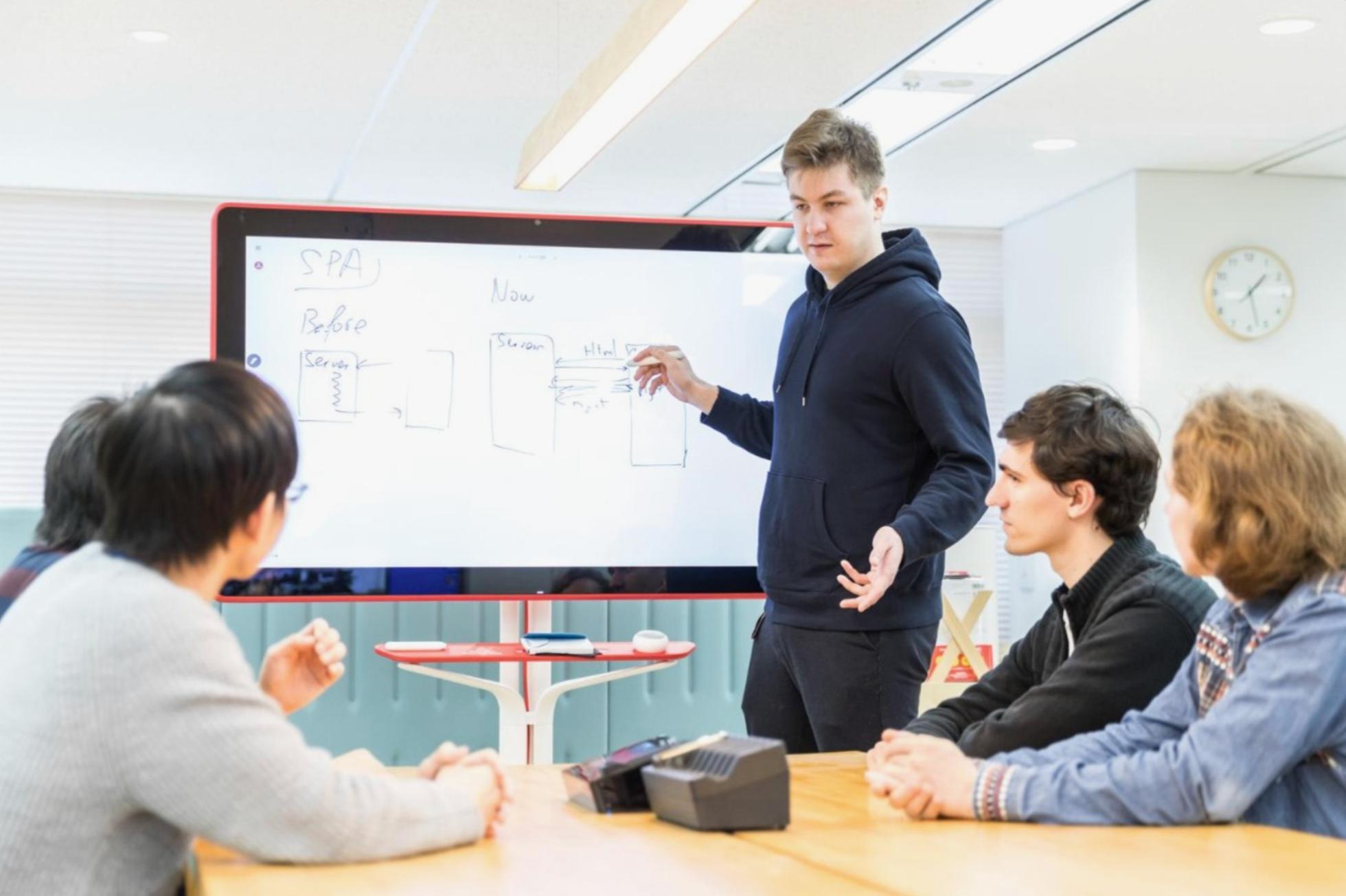 サービスの構築方法に関して議論するエンジニア達