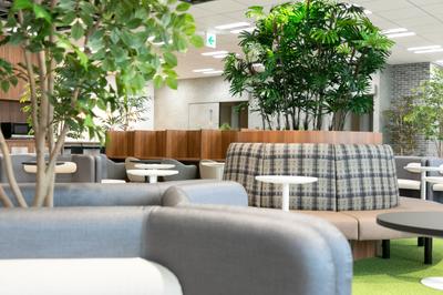 新設されたばかりの秋葉原拠点にあるリフレクションスペース。自然光が差し込む広々とした癒しの空間。