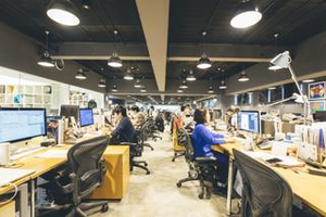 やわらかな光が差し込む開放的なオフィス。シンプルすぎず賑やかすぎない雰囲気が、集中しやすい空気をつくっています。