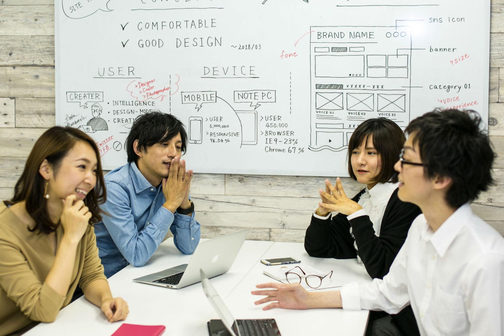 ▲本社4Fの受付スペースです。日々、多岐に渡る業界の企業から、様々なクリエイティブ課題解決の相談を受けています。