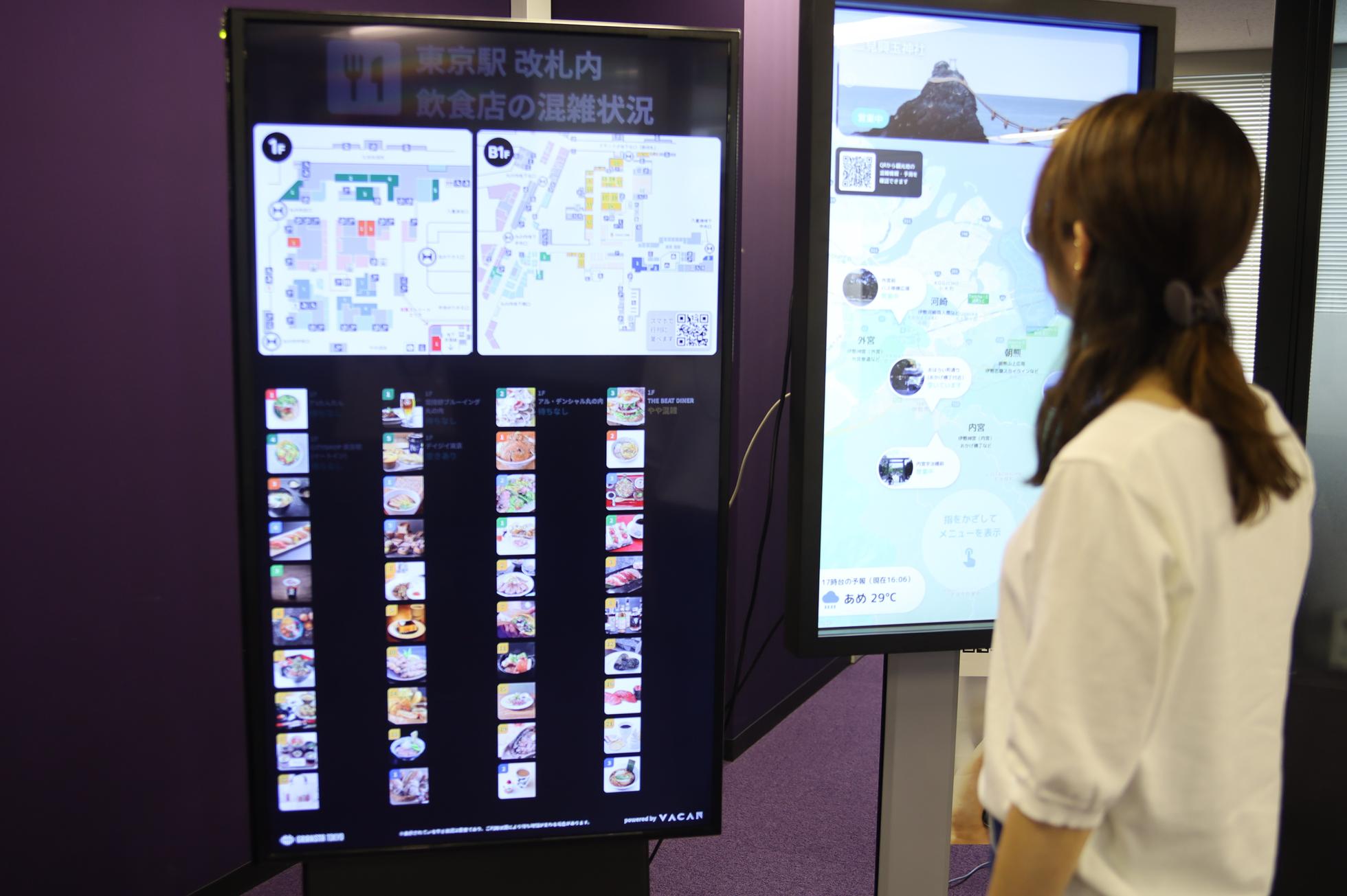 混雑状況をカメラやセンサーで検知し、人手に頼らず表示します