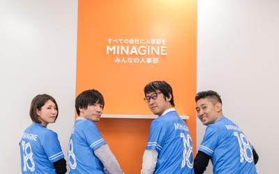 社名・ブランドであるMINAGINE(ミナジン)は①経営者・社員を含めた組織で働く「みんなの人事部」、②日本全国すべての会社の「みんなの人事部」、という想いを込めて、創業メンバーで策定しました。