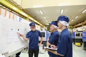 今日のスケジュールを成形部の皆で擦り合わせをしているワンシーン