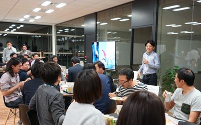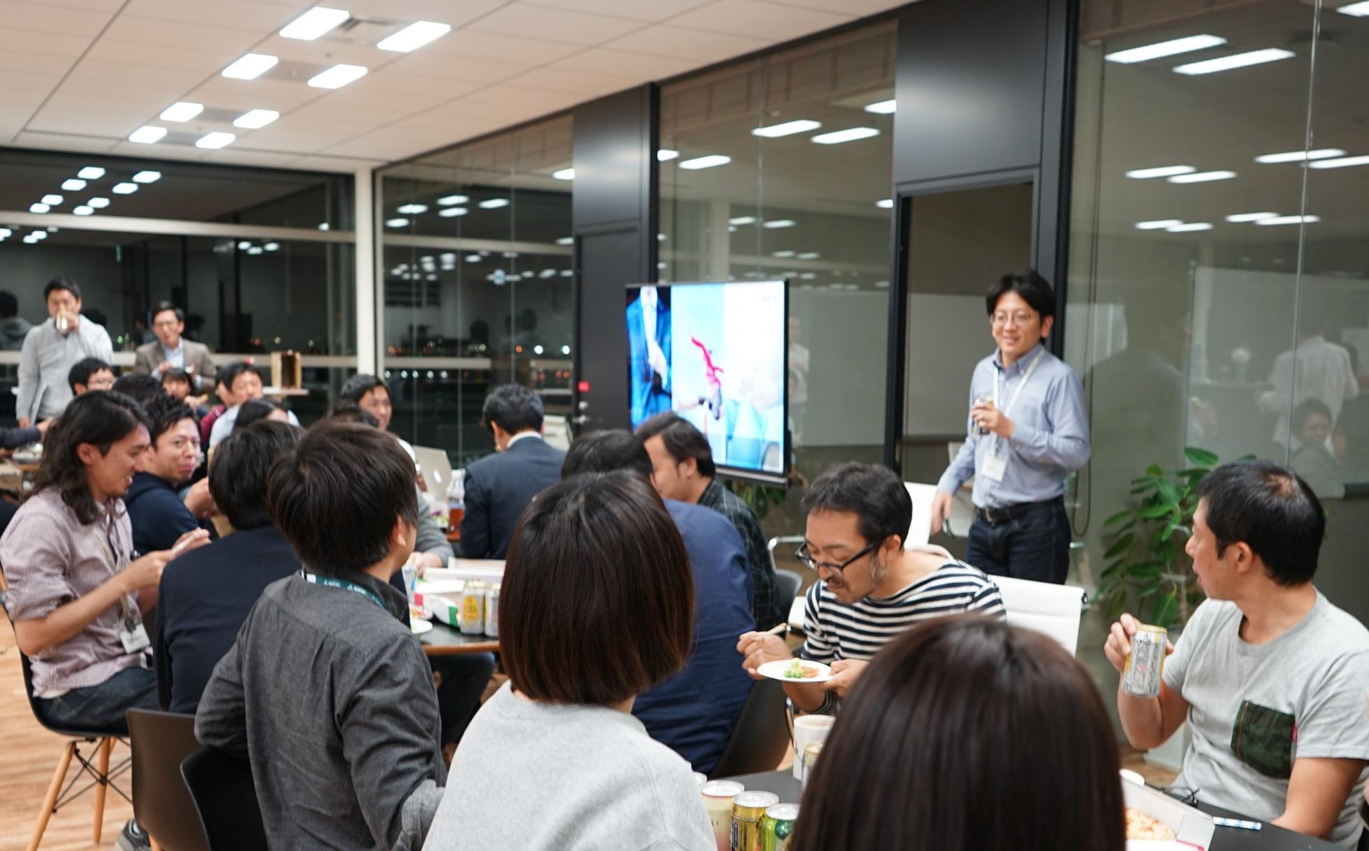 社内のオープンスペースでは、様々なチームのミーティングが行われます。(時にはチームを超えて集まることも)