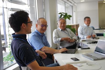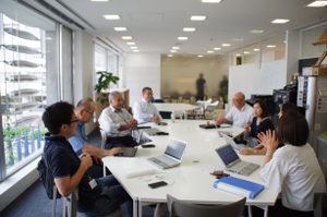 グローバル顧問の提案について打ち合わせ中。オープンスペースで気軽にコミュニケーションがとれる環境です