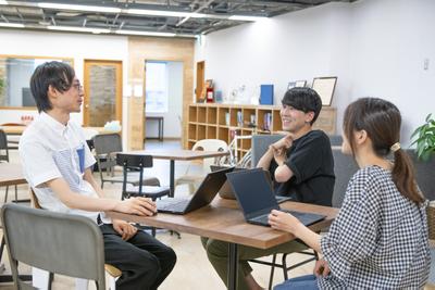 10階にあるフリースペースで打ち合わせ。開放的な空間でのびのびを議論することができます。