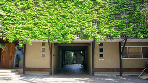 代々木オフィスの入口。中庭を囲むようにして働いています。2020年冬、左側にパン屋さんがオープン。