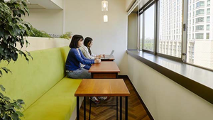 晴海通り沿いビル最上階、皇居まで見渡せる休憩スペース。開放的、自然光を取り入れ明る環境です。