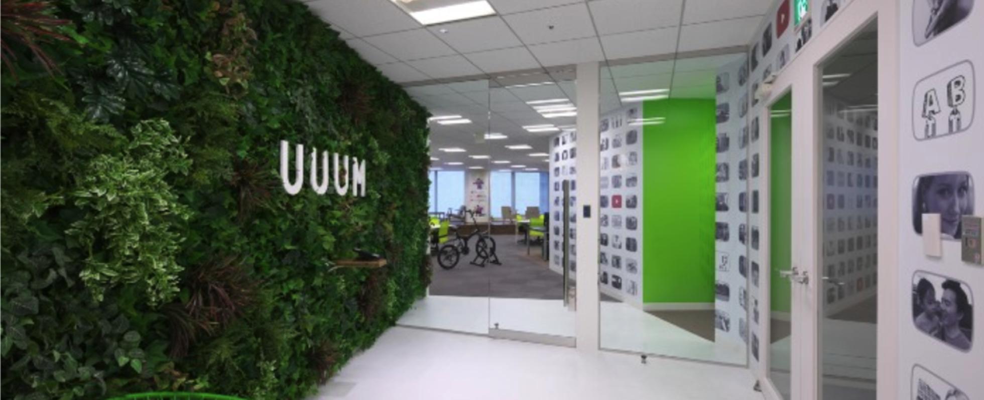 本社にはいくつかスタジオ機能も備えており、クリエイターのニーズに応じて撮影や編集のサポートを行っています。エントランスは、両側壁面がガラス張りとなっており、弊社ならではのオフィス環境となっております。