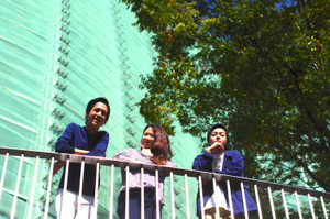 アー写を意識してるCA担当の張(左)、人事の喜多(中)、プロダクト責任者の山崎(右)