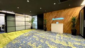 オフィスエントランス。フリーアドレスで自由で快適なスペースです。東京、大阪オフィスのほか、シェアオフィスやワーケーションオフィスを札幌や和歌山にも開設しています。