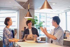 2020年12月に改装した新オフィス(フリーアドレス席やオフィス中央のパントリー)