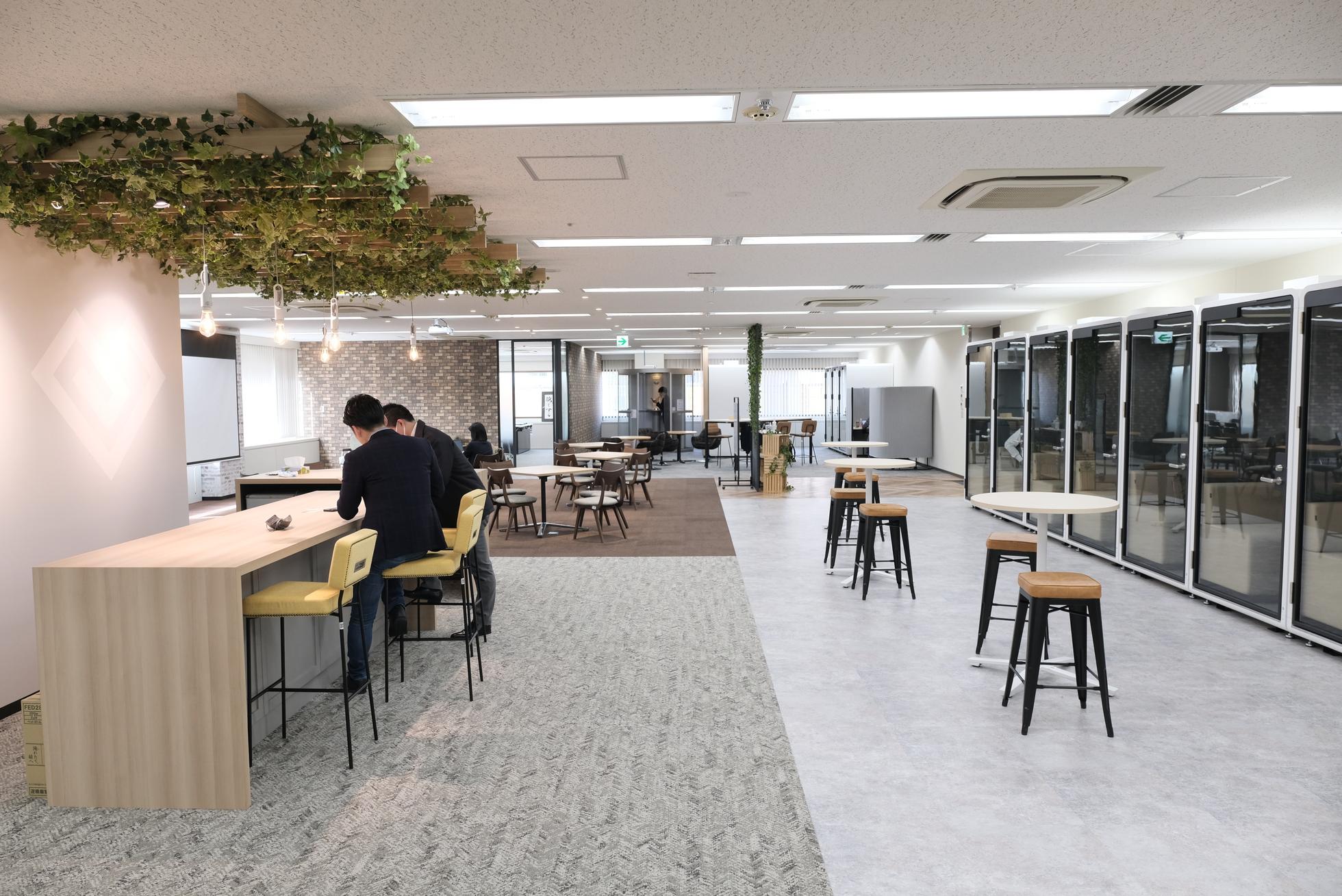 本社オフィスにはWORKPODを多数設置しており、防音なのでオンラインのミーティングも問題なく実施できます!社内はフリーアドレスで自分の好きな場所で働くことができます。