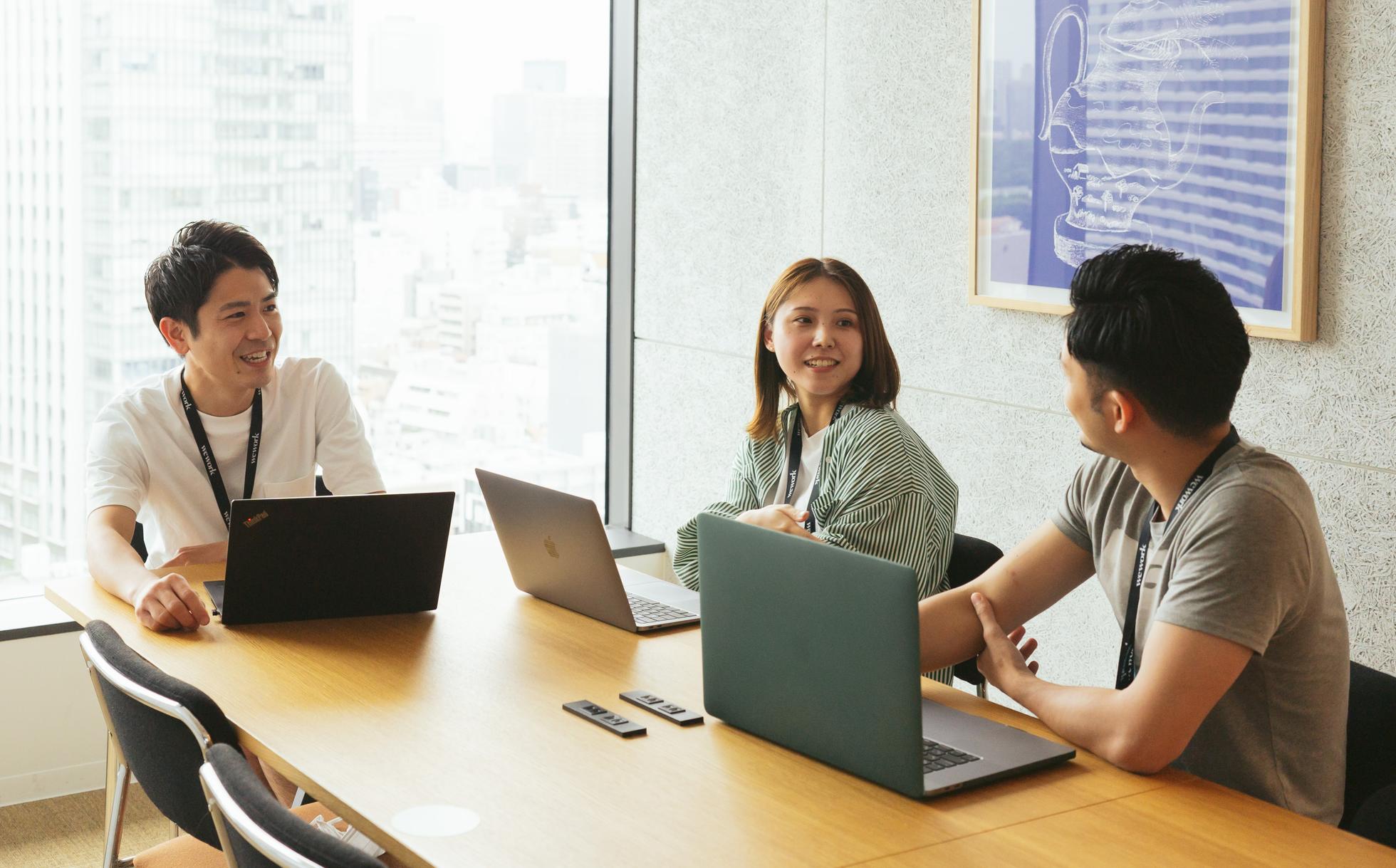 左から代表と取締役2名。3名とも新卒で株式会社じげんに入社した経歴を持つ事業会社出身者です。
