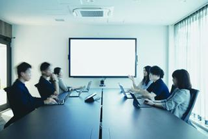 各会議室にあるZoomRoom。そのまま文字が書ける優れもの。DX促進で快適に仕事ができる環境が整っています。