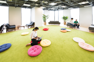 オフィスでは靴を脱いでリラックスした状態で過ごします。