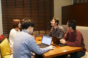 MTGの一コマ。テレワークも導入し働きやすい環境を整備しています。