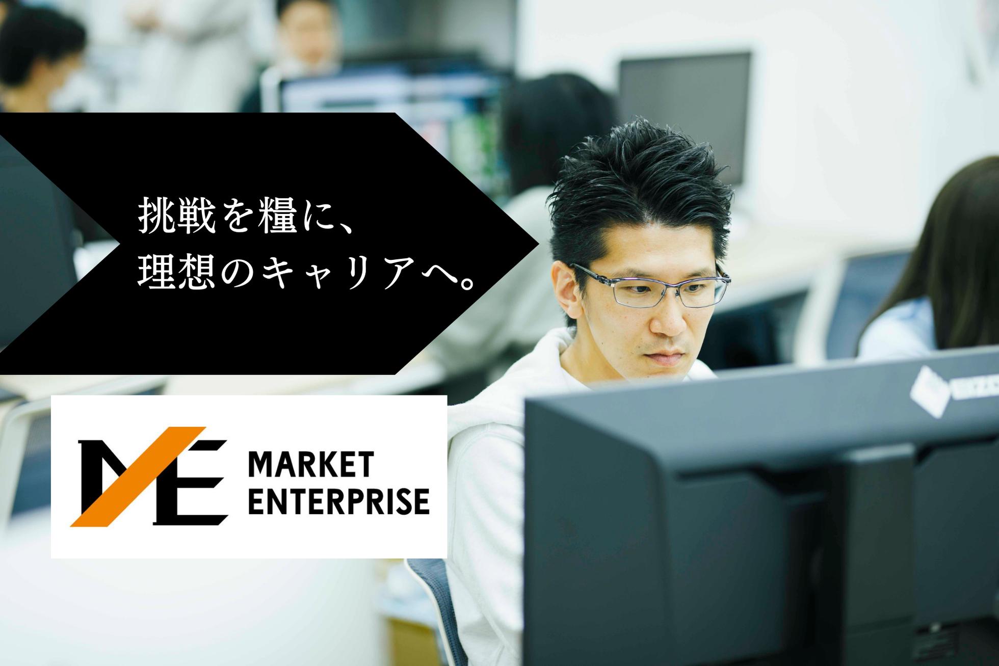 【大手×ベンチャー】上場しても尚色褪せない、“挑戦”を尊重する文化 ---------------------------------------------------------------------------- 「自社の成長が会社の成長とリンクする会社」 「常にさまざまなことにチャレンジできる会社」 「できないことができる会社」 マーケットエンタープライズ社員にどんな会社かと聞くと、このような声が上がってきます。 当社が大事にしている考えの一つである"挑戦"のマインド。 2021年の2月に東証プライム上場を果たしましたが、設立から丸15年、いつまでもこのベンチャーマインドを尊重していきたいと考えています。 社名の由来である【マーケット(市場)】を【エンタープライズ(冒険的創造)】し続け、新しい市場を作り続ける会社であるために、私たちは日々奔走しています。