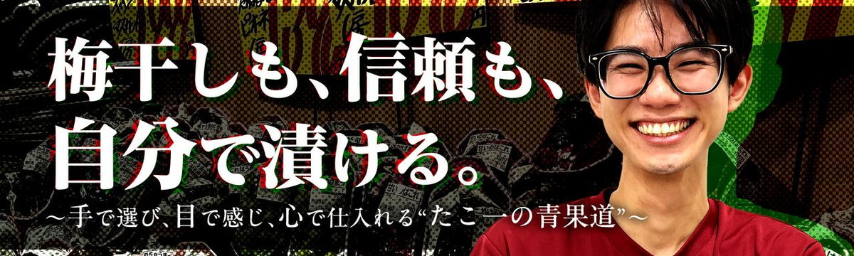 (株)ヤマタ 7 days ago Follow 海老原 裕志 【梅干しも、信頼も、自分で漬ける。】手で選び、目で感じ、心で仕入れる“たこ一の青果道”。 「果物が好き」から始まった高校2年のとき、家の近くのスーパーで「アルバイト募集」の貼り紙を見つけました。軽い気持ちで応募して、配属されたのが青果部。魚をさばくのは苦手だったけど、果物が好きで、野... Read more