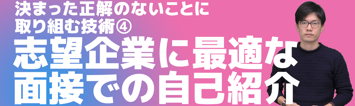 決まった正解のないことに取り組む技術 over 5 years ago Follow Yusuke Saito 志望企業に最適な面接での自己紹介の導き方(決まった正解のないことに取り組む技術 ④) このシリーズは何?JIBUNSTYLEでは、「誰もがやりたいことをやって輝いている社会」を実現するために、ITコンサルティング/新規事業支援/受託開発のかたわら、社会人向けのアプリ開発スクール、... Read more