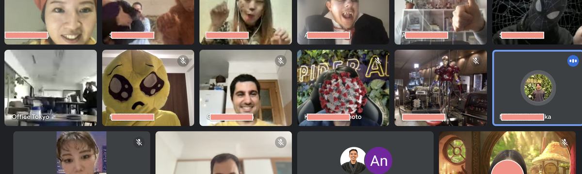 株式会社Spider Labs over 3 years ago Follow Yuki Spider Labs 完全オンライン開催のハロウィンパーティーの様子 ①誰でしょう?(答えは本文下の方)②誰でしょう?(答えは本文下の方)③誰でしょう?(答えは本文下の方)今回のハロウィンの様子です!🎃総勢8名の方が仮装に参加してくれました! なんと!日本チームの... Read more