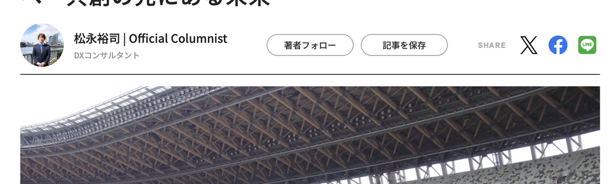 Matz 3 months ago Follow 赤字13億円の聖地「国立競技場」から稼げるスタジアムへ 共創の先にある未来 国立競技のネーミングライツについて、Forbes Japanに寄稿しました。ご照覧のほどを。赤字13億円の聖地「国立競技場」から稼げるスタジアムへ 共創の先にある未来 Read more