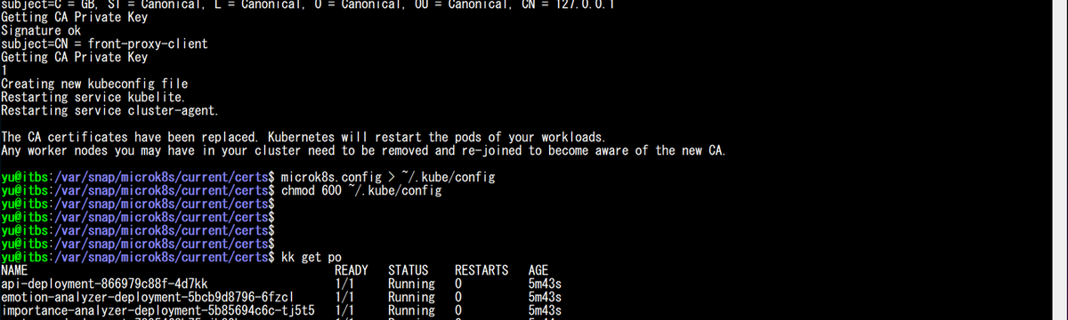 Yuji Yamasaki 23 days ago Follow 【トラブルシューティング】microk8sで「tls: failed to verify certificate」... 久しぶりに microk8s を使用していたら kubectl exec コマンドで pod にアクセスできなかった。DNSを起動して証明書を更新してもうまくいかない。多くの人が1度は通ると思っ... Read more