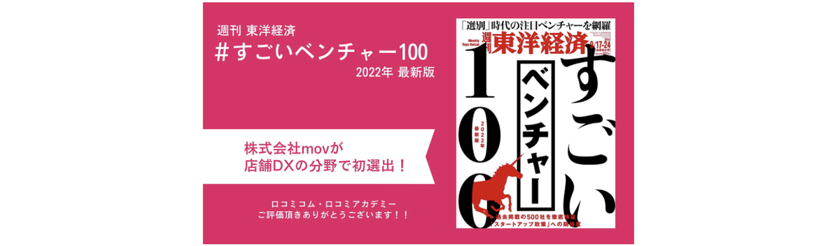 株式会社mov about 3 years ago Follow 森 和加奈 movが東洋経済「すごいベンチャー100」に選出されました こんにちは、人事の森です!9月12日発売の 週刊 東洋経済「すごいベンチャー100」特集に、movが選出されました!前回の大型リリース(シリーズA/7億円(累計10.8億円)資金調達のニュース)... Read more