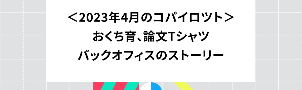 コパイロツトについて over 2 years ago Follow PR Team COPILOT 2023年4月のコパイロツト:おくち育、論文Tシャツ、バックオフィスのストーリー 4月のコパイロツトの活動情報をまとめました🔖実績紹介:ライオン株式会社 オーラルケアプログラム『おくち育』プロジェクト実は、コパイロツトは日本で最初の「unFixモデル」パートナー。そのunFi... Read more