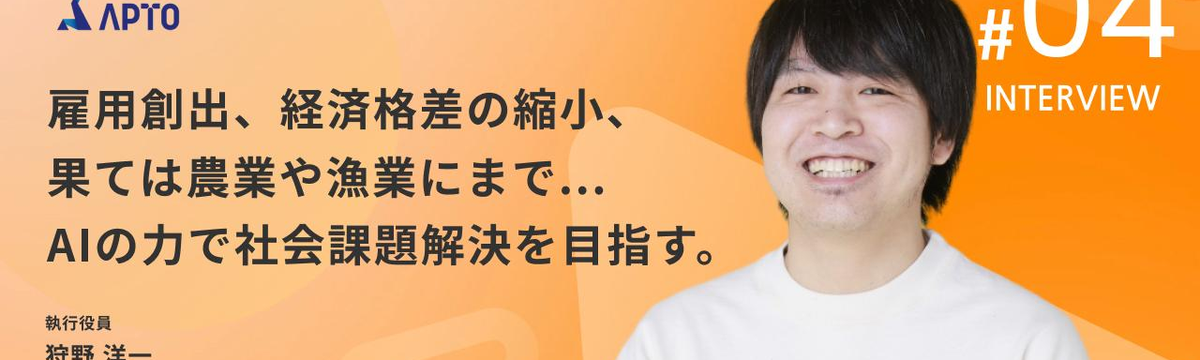 株式会社APTO over 1 year ago Follow Ryo Takashina 【COOインタビュー】ビジネスの勝機を捉え、AIで世界を変革するために 株式会社APTOでは、さまざまなバックグラウンドを持つ人材が活躍しています。大手出版会社から起業した経験を持つ狩野さんも、その一人。ハイキャリア人材として培ってきた経験を「AI」という未知の領域... Read more