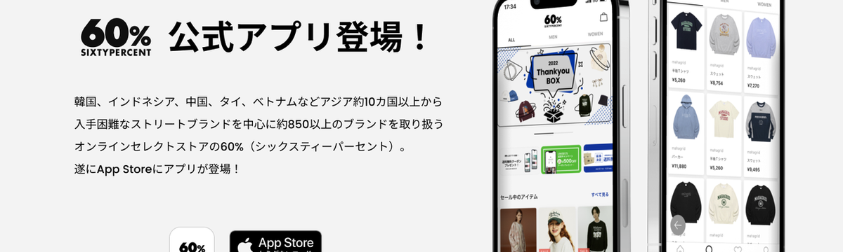 株式会社シックスティーパーセント almost 3 years ago Follow 滉大 渡辺 韓国を筆頭にアジアから850ブランド超が集う「60%」(シックスティーパーセント)の公式アプリが本日リリース! 総取扱ブランド数850ブランド超。韓国ブランドの入店数No.1のオンラインセレクトストア「60%」が待望の公式アプリをリリース!韓国を筆頭にアジアから850ブランド以上が集うオンラインセレクトス... Read more