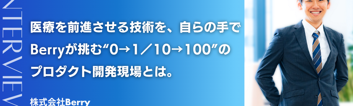 株式会社Berry 30 days ago Follow 山下 真梨奈 and 1 others 「医療を前進させる技術を、自らの手で」ーBerryが挑む“0→1/10→100”のプロダクト開発現場とは こんにちは!株式会社Berryの採用担当です。 本日は、開発統括部部長の名越さんへのインタビューをご紹介いたします。「医療×ものづくり×SaaS」で解決する課題と、社会にもたらす価値Berryの... Read more