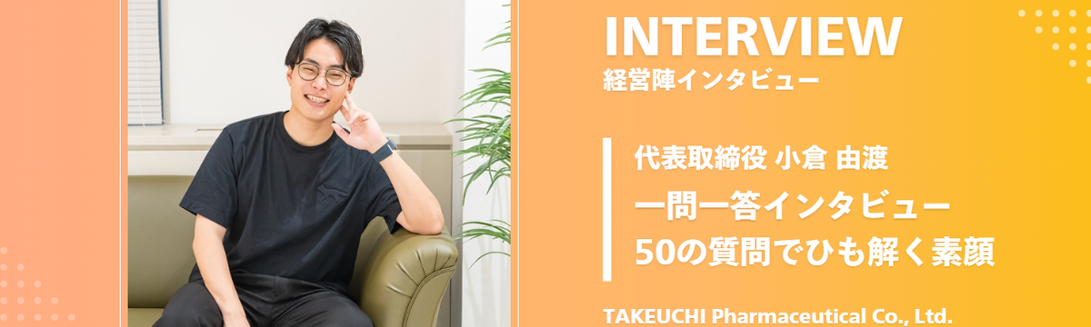 武内製薬株式会社 about 21 hours ago Follow 木田 由希子 and 1 others 【代表インタビュー】50の質問でひも解く、武内製薬の代表取締役・小倉の素顔とは こんにちは!武内製薬株式会社の採用担当です。今回は、武内製薬の代表取締役である小倉社長に50の質問をしてみました!「選考時に重視しているポイントは?」といった真面目な質問から、「最近のマイブーム... Read more